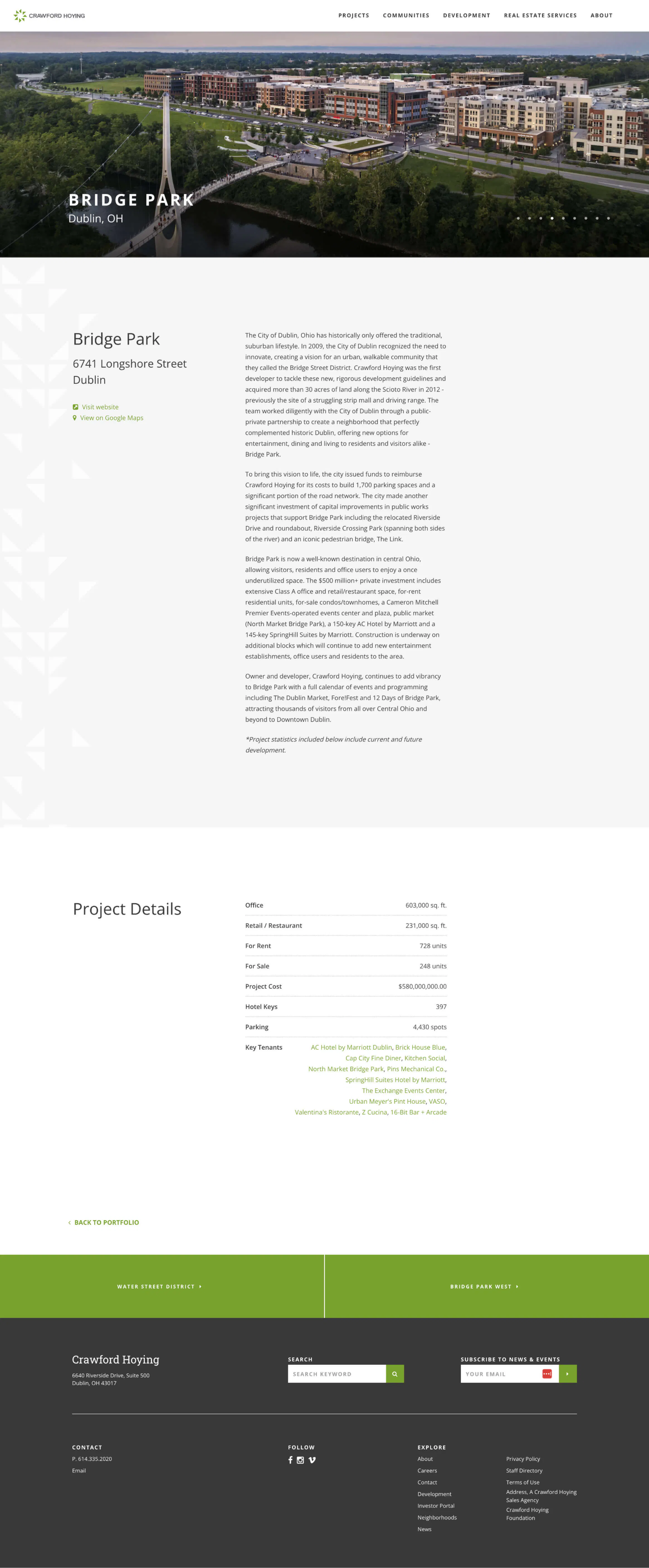 Five years prior, Crawford Hoying had expanded into development from its beginnings in residential property management. The company needed to update its digital presence to reflect its growing position as an industry leader.