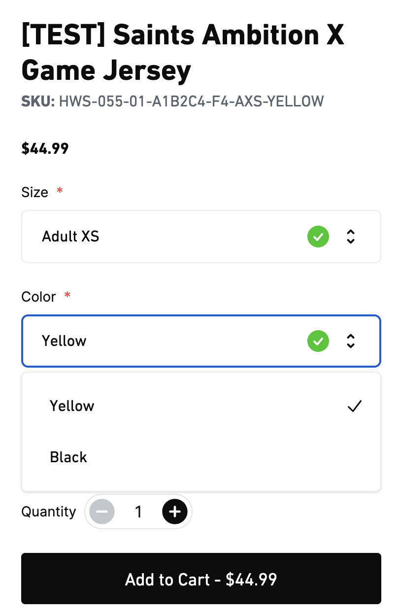 Second (and understandably due to the lack of native variant option fields), developers most commonly hard-code specific fields per variant group, such as Color or Size. This means any changes to these variant option groups require developers to modify the field configuration and possibly the front-end templates.